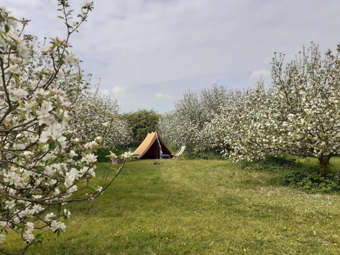 Group bookings: Groups of friends or families with up to 6 adults plus children up to a maximum group size of 12 are very welcome to book. We are such a small site and we hope this helps to create a peaceful and friendly atmosphere for all our guests. If your group of 12 doesn't exactly fit into this description please contact us. For larger groups we are able to offer exclusive hire of the orchard.