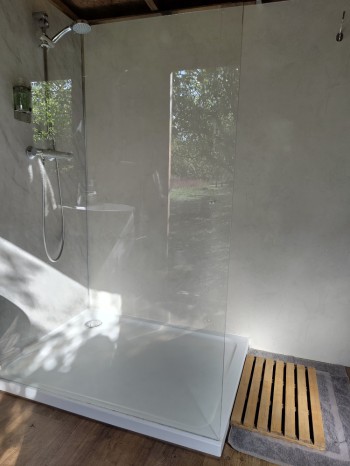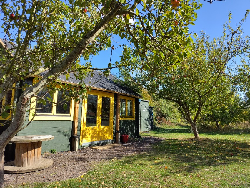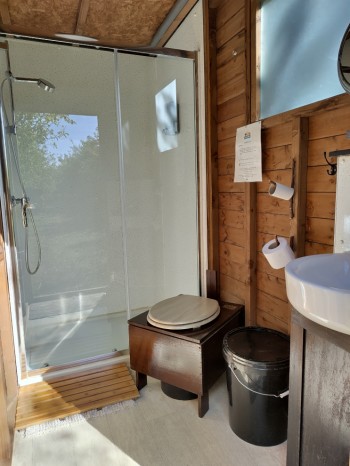 Next to the Apple Hut are two washrooms which each have a compost toilet, wash basin and shower with hot and cold running water. Eco-friendly hand soap, shampoo and conditioner are provided. Please note that only certified biodegradable shampoo and shower gel (e.g. Faith In Nature or Lush) is suitable for use in the showers.
